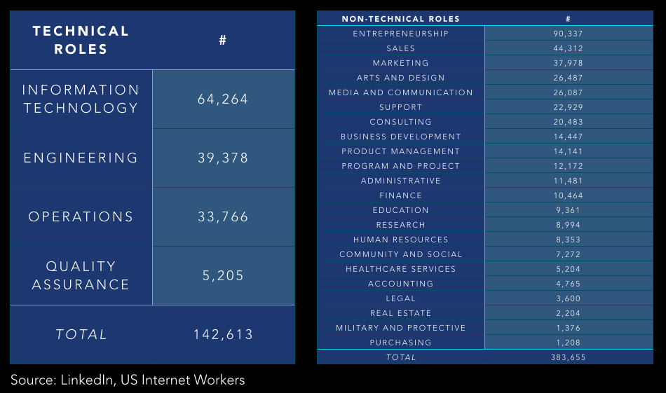 He contacted us and generously offered to share his story, complete with data revealing that there are three times as many non-tech job opportunities for MBAs at internet firms (in marketing, HR, business development, etc.) as there are positions for computer science (CS) majors and engineers. So if you’re from a non-tech background and want to know how make the shift, this post’s for you.