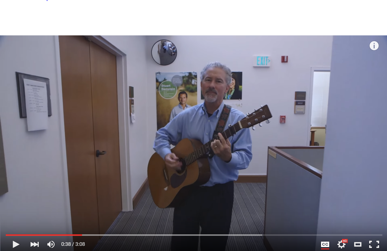In his YouTube music video, Lyons starts out at his desk, with thought-bubbles of his own over his head, musing about how he can inspire others to think bigger, dream bigger and imagine bigger. He then picks up his guitar and begins to strum, stroll and sing tailored lyrics extolling the school’s Nobel laureautes (acknowledging, self-deprecatingly, that he doesn’t have one yet), four founding principles and the talent and achievements of its alumnae.
