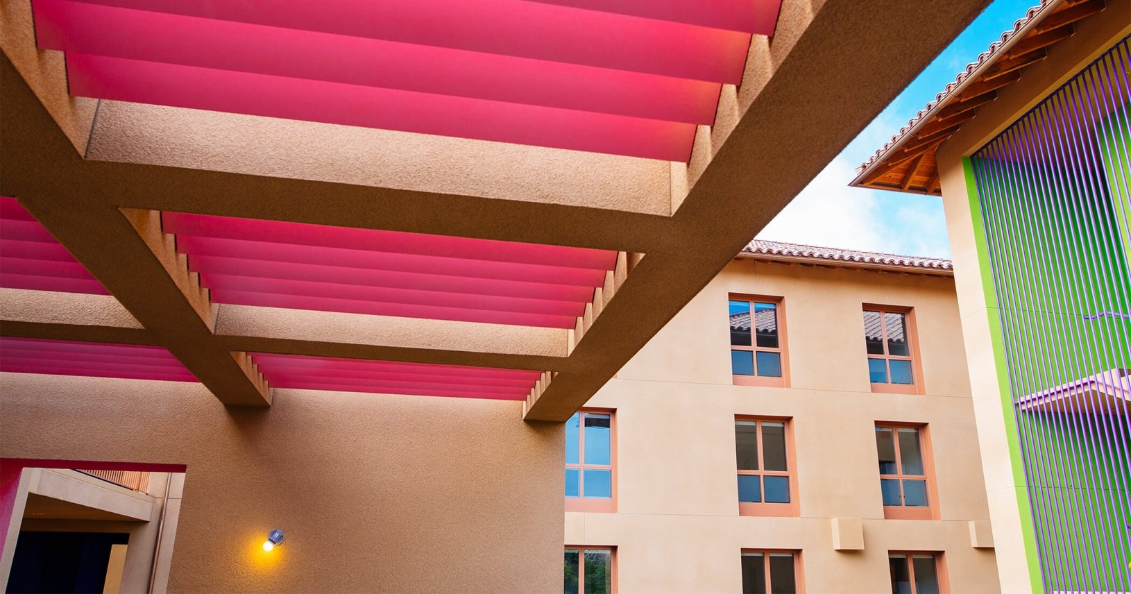 The $75 million project is nearing completion after initially breaking ground two years ago. Design firms Legorreta + Legorreta of Mexico City and Steinberg Architects of San Jose collaborated on the project, which features a three- and four-story building, 202 living units for students and a 4,100-square-foot open pavilion soon to be accessible to anyone on campus. The building is connected to the previously completed 280-unit Schwab Residential Center, which was also designed by the same firms.