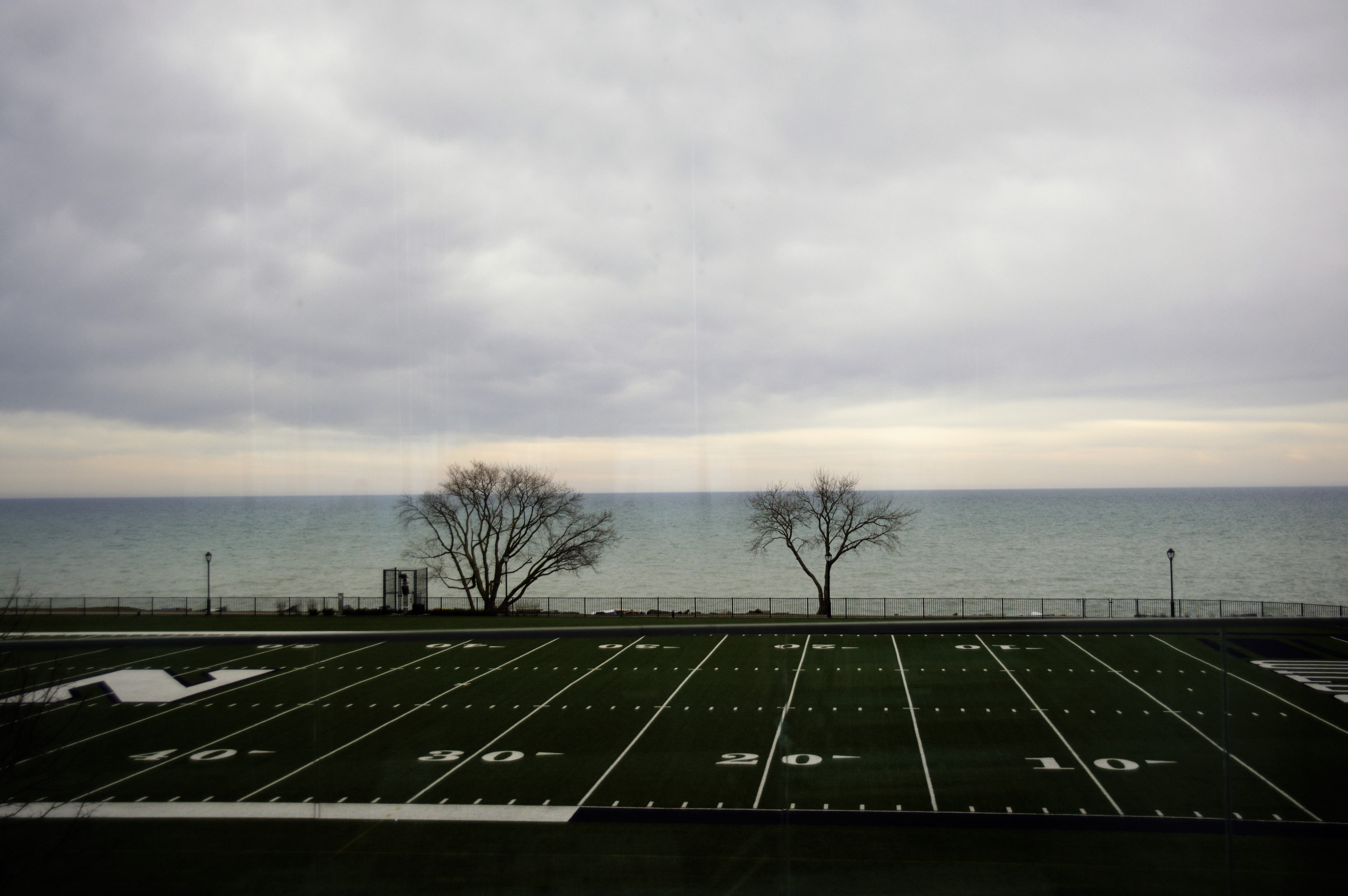 Outside the auditorium, beneath a practice football field, is a geothermal system that helps heat and cool the building efficiently. A series of 146 double rolled tubes built into the ground are filled with liquid, and because the Earth’s core temperature remains constant at around 50 degrees, this liquid requires less warming in the winter and less cooling in the summer to regular the building’s temperature. Serving as the first source of heating and cooling, the system is adequate on all but very high-load days, when the building taps into the university’s heating and cooling system. “It’s an efficient way to do things, although unfortunately you get no LEED credit,” says Paul. LEED, or Leadership in Energy and Environmental Design, is a popular green building certification program used worldwide. The design team did consider photovoltaics and wind—both of which would have contributed to LEED certification—but the technology wasn’t there to do it for a building of this size. “This is more proven and has been around a lot longer,” says Paul. But even without wind or solar features, the building is solidly within LEED certification, she says.