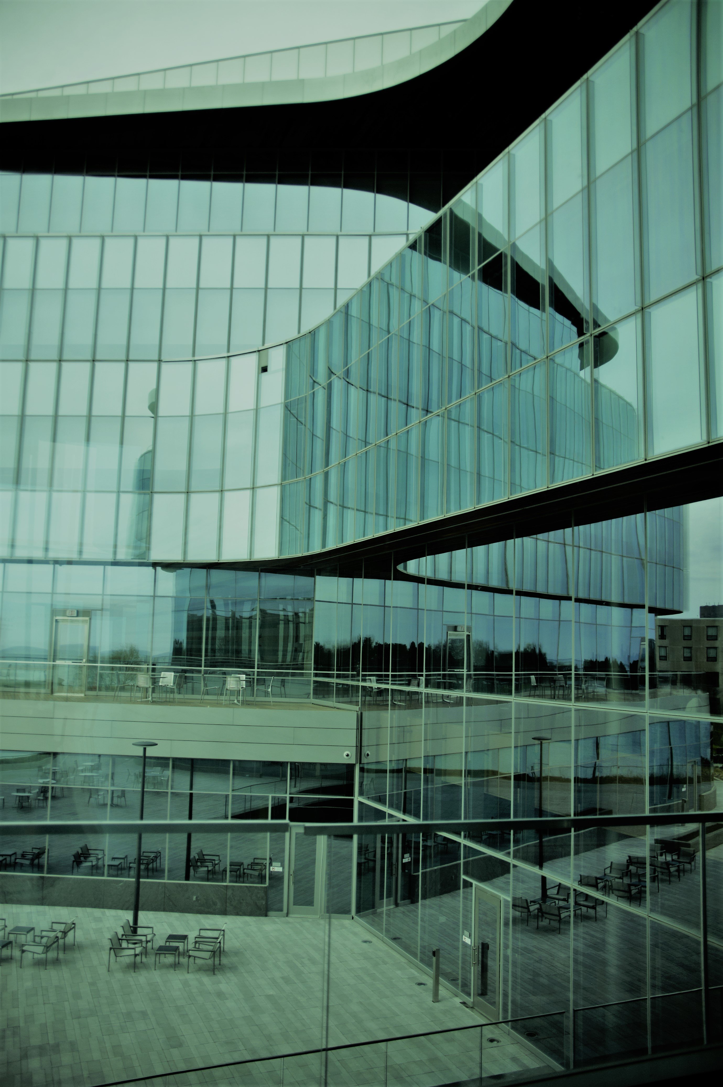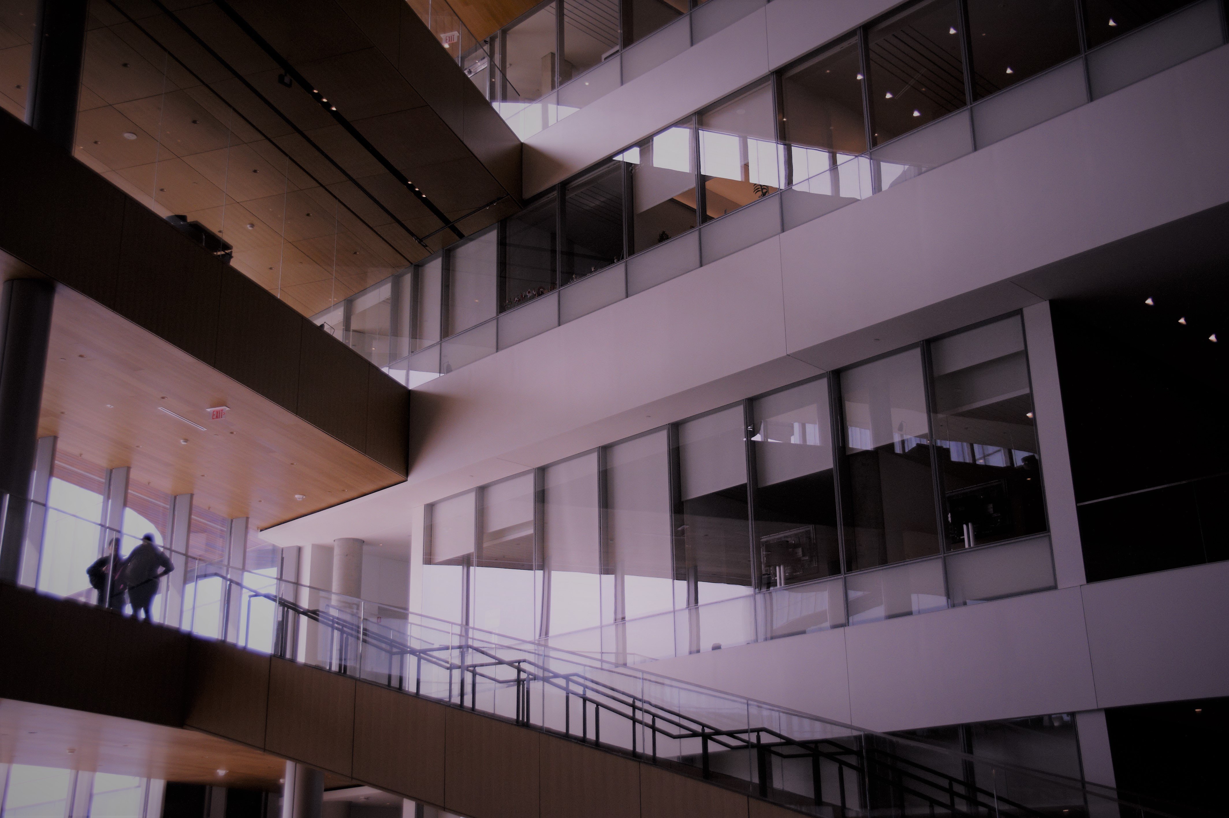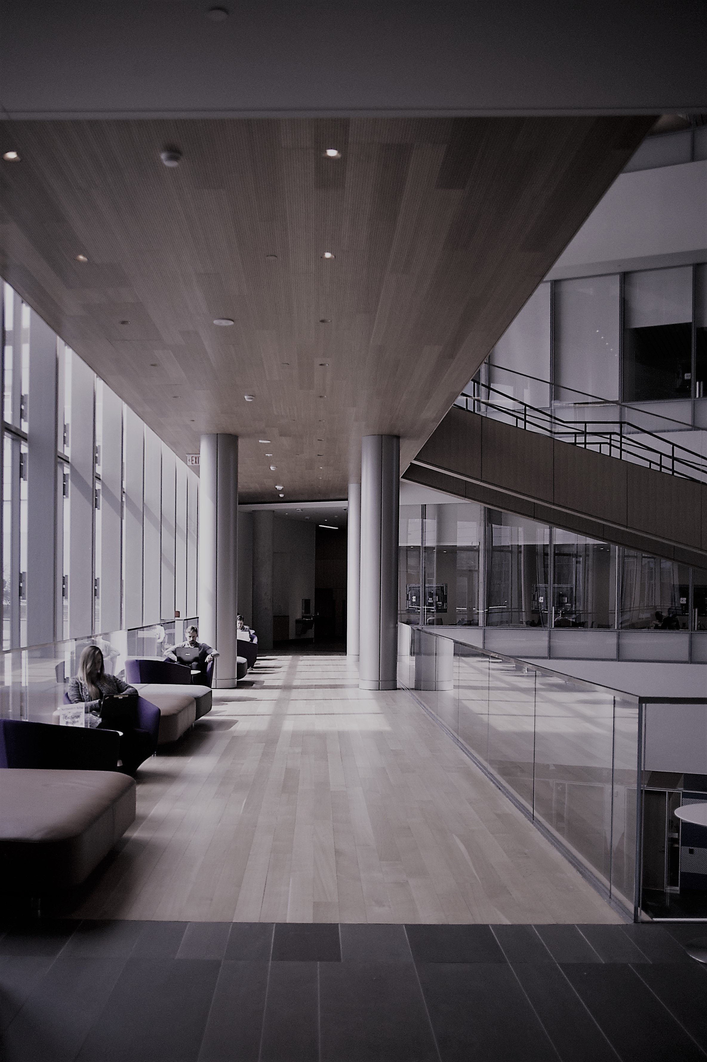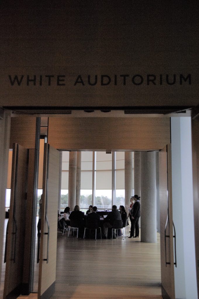 Strategically places courtyards and light courts help bring sunlight into interior building spaces.One of several light courts providing outdoor gathering places while bringing sunlight indoors.Two-story auditorium with retractable seating can accommodate up to 350 people in varying configurations, affording sweeping views of Lake Michigan and downtown Chicago.Spanish Steps