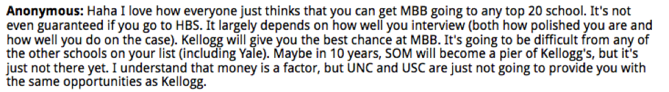Other contributors weighed in on the candidate’s plans to target McKinsey, Bain or BCG (MBB) post-MBA: