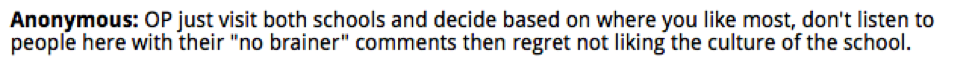 Other commenters honed in on how each school is suited to the Big Three and the value of the scholarship: