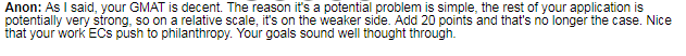 But then a community member was concerned about what tends to be a staple of MBA applications:
