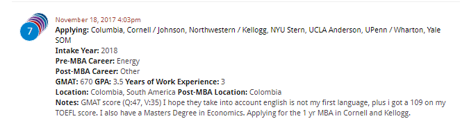 As some MBA candidates report receiving interview invitations, others are posting their application plans to ApplyWire, Clear Admit’s latest tool to aid in your admissions process. This week, we’re spotlighting an international candidate exploring a range of options. We take a closer look at the applicant’s plans to apply to Columbia, Cornell / Johnson, Northwestern / Kellogg, NYU Stern, UCLA Anderson, UPenn / Wharton, and Yale SOM. Read on for more details about the candidate’s background.