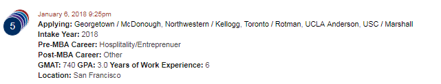 As many Round 1 candidates report their decisions, others are posting their Round 2 application plans to ApplyWire, Clear Admit’s latest tool to aid in your admissions process. This week, we’re setting the spotlight on a candidate with a background in hospitality. We take a closer look at their plans in applying to Georgetown / McDonough, Northwestern / Kellogg, Toronto / Rotman, UCLA Anderson and USC / Marshall. Read on for more details about the candidate’s background.