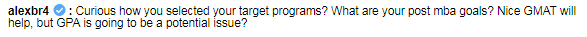 One of our resident experts, Alex Brown, inquired about the applicant’s goals and more: