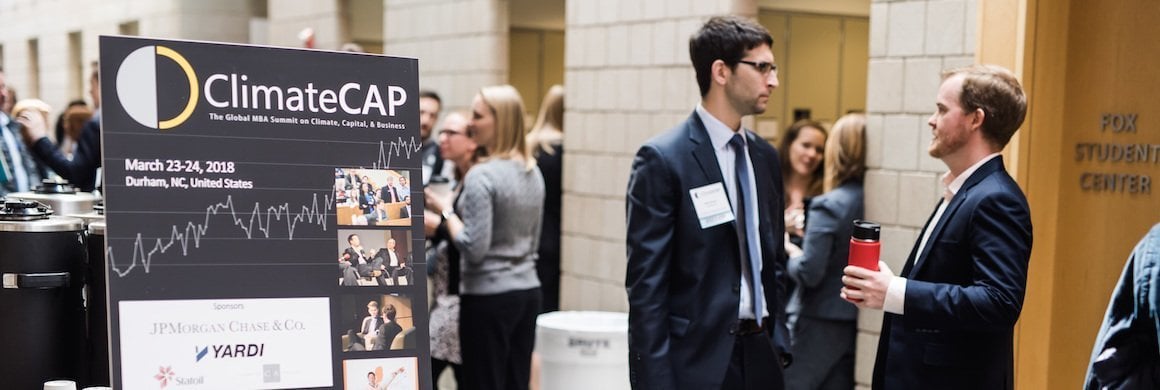 ClimateCAP brings together MBA students, business school professors, and leading climate and business experts from around the world to discuss the business implications of climate change. This year’s event took place March 23rd and 24th and drew students from Wharton, Harvard, Stanford, LBS, Michigan Ross, Cornell Johnson, UNC Kenan-Flagler, MIT Sloan, NYU Stern, Yale SOM, GA Tech, Northwestern Kellogg, and Georgetown McDonough. Students from any and all business schools are invited to attend.