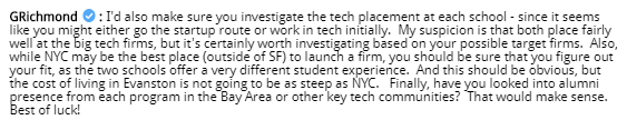 For this MBA DecisionWire Spotlight post, which highlights MBA candidates’ choices as shared in Clear Admit’s DecisionWire, we take a closer look at a candidate accepted to Columbia and Northwestern / Kellogg with an interest in technology and entrepreneurship. The candidate added some more detail in the initial post: