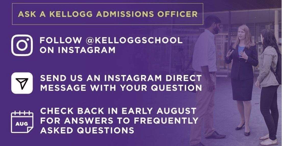 Remember to stay tuned later this month for the Kellogg admissions team to provide video answers to the most frequently asked questions.