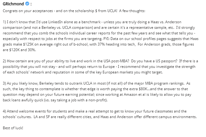 Clear Admit’s Graham Richmond spent some time crafting a lengthy response: