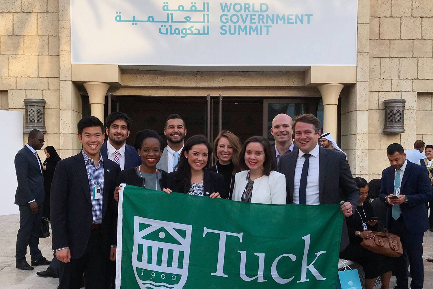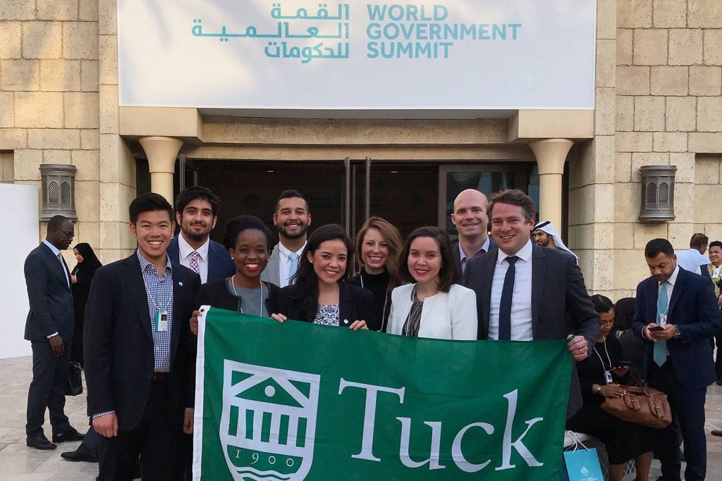 This year, a team of five Dartmouth / Tuck MBA students took home the top prize in the Shaping Future Governments: Global Universities Challenges held in Dubai. The Challenge, hosted at the World Government Summit (WGS), pitted 15 teams from top business schools around the world against each other for a two-day competition. To win, teams had to craft quick and creative solutions to global problems. Specifically, they were tasked to come up with a 10-year strategy for the sustainable development of the fictional war-torn country of Urmania.