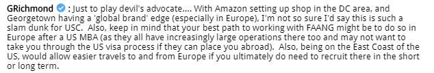 Subsequent feedback from Clear Admit’s Graham Richmond honed in on location: