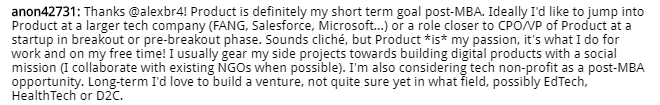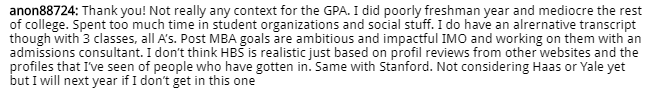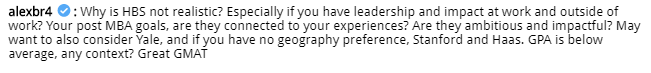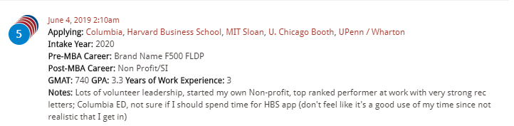 Brown also had some advice for another applicant, who is applying to Columbia, MIT Sloan, U. Chicago Booth, UPenn / Wharton, and started off with doubts about admission to Harvard Business School: