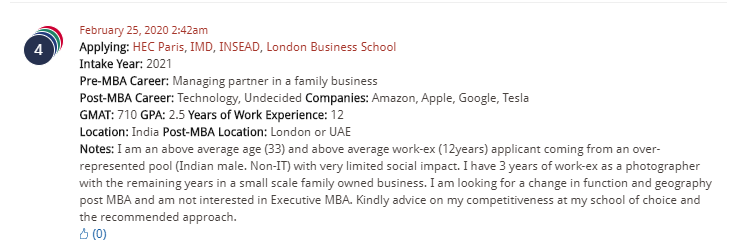 In regards to profiles this week, they review three from MBA applicants and candidates who shared their stories on MBA DecisionWire and MBA ApplyWire. One person needs to refine their career goals: