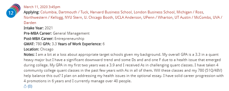 Be sure to post to MBA ApplyWire or MBA DecisionWire if you’d like Graham and Alex to offer admissions advice.