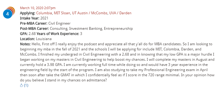Here’s a preview of which profiles they discuss. Press play on the podcast episode below! To start, one MBA hopeful wants to know which schools they should consider:
