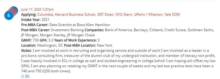 Another MBA applicant is targeting an investment banking career: