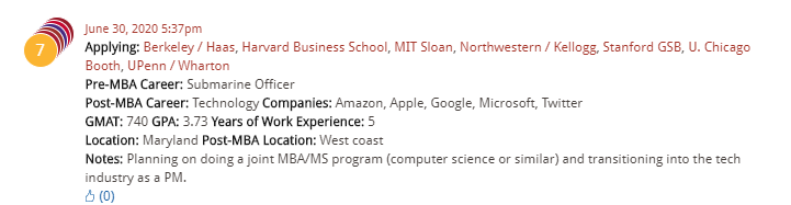 The first MBA hopeful has a military background:
