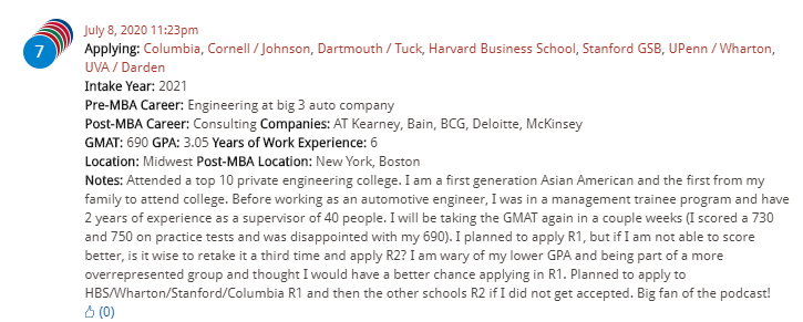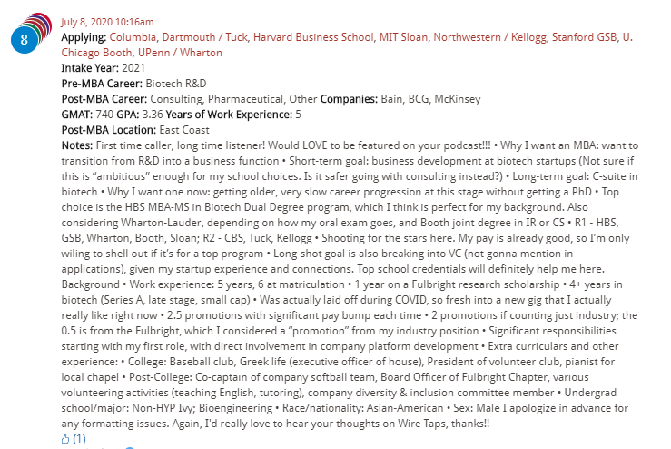 Be sure to post to MBA ApplyWire or MBA DecisionWire if you’d like Graham and Alex to offer admissions advice.