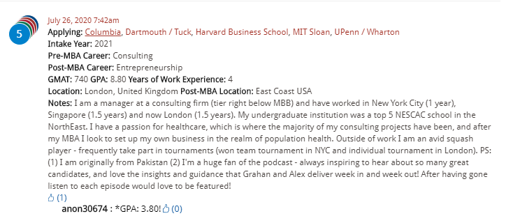 Be sure to post to MBA ApplyWire or MBA DecisionWire if you’d like Graham and Alex to offer admissions advice.