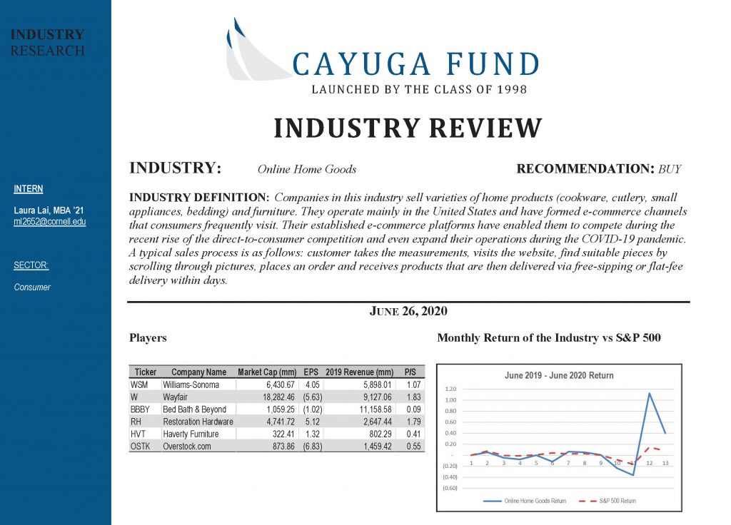 By May, the internship was created with the goal of providing real buy-side experience to students for the summer, while also supporting the Cayuga Fund during this volatile period. Notices were distributed to students who had been enrolled in NBA 4120 – Equity Investment Research and Analysis, as well as the Investment Research and Asset Management (IRAM) immersion, and all 13 interested students were accepted.