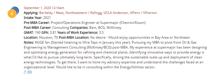 Another MBA hopeful has a background—and hopefully, future—in the energy business: