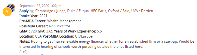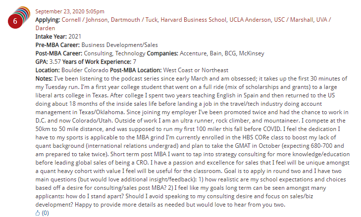 We are rolling right through Round 1 with another podcast episode of Wire Taps. Our admissions experts, Graham Richmond and Alex Brown, offer their strategic advice to MBA applicants who have posted in MBA ApplyWire. Preview the prospective MBAs’ profiles below, then tune into this week’s episode.
