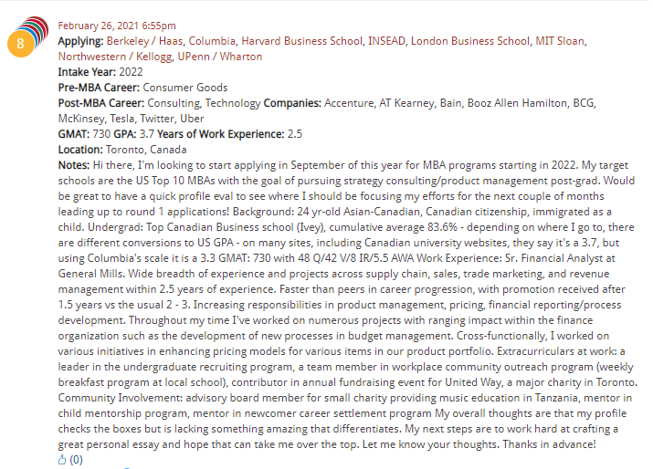Another early bird applicant wants to pursue strategy consulting/product management post-MBA: