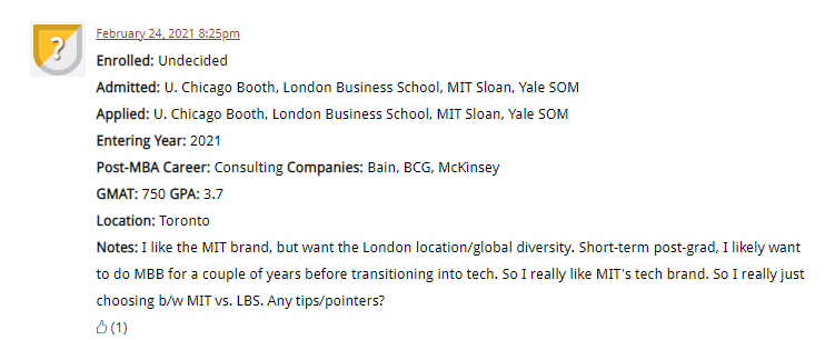 As always, the duo work in some key MBA admissions lessons, such as how first generation Asian-Americans (and Asian-Canadians) are viewed in the applicant pool, whether or not there is grade inflation in Canada, and how a candidate who loves London (and London Business School) should weigh offers from Booth, MIT, and LBS…given the target of McKinsey/Bain/BCG (short-term) and a tech job (long-term).