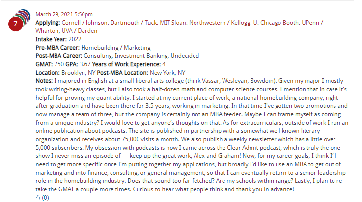 Be sure to post to MBA ApplyWire or MBA DecisionWire if you’d like Graham and Alex to offer admissions advice.