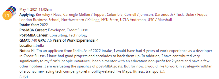 An Indian applicant is looking to work in strategy or product management post-MBA: