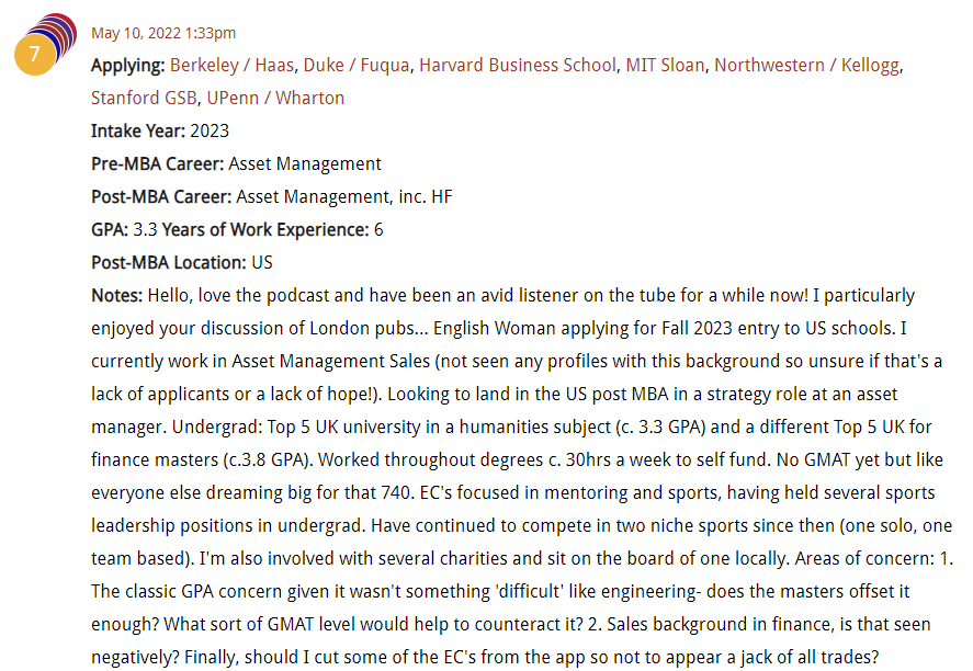 Be sure to post to MBA ApplyWire, MBA DecisionWire or MBA RankingsWire if you’d like Graham and Alex to offer admissions advice.