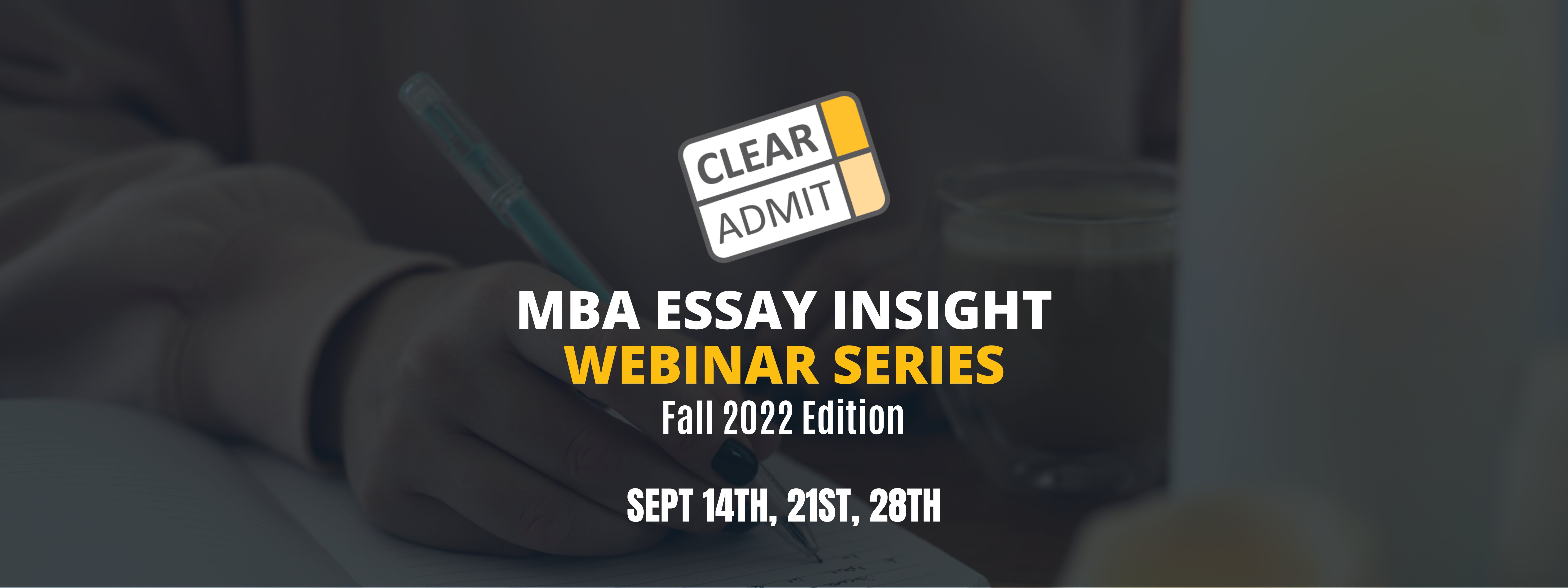 Get essay tips straight from admissions representatives at leading business schools during our upcoming MBA Essay Insight Webinar Series!