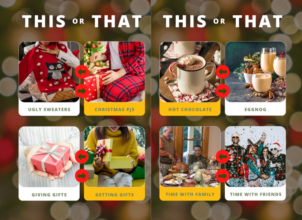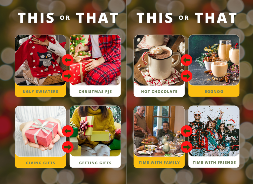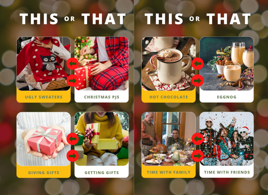 Daniel’s choice is to celebrate December Holidays with family, wearing an ugly sweater, and drinking hot chocolate. He also prefers giving gifts over getting ones.