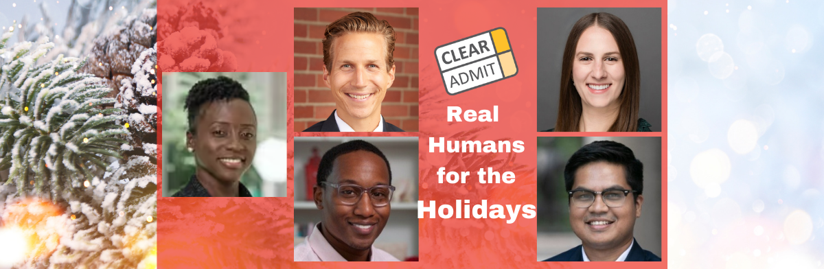 ‘Tis the holiday season and we’re bringing you a festive short series inspired by Real Humans: MBA Students, called Real Humans for the Holidays! Read what students and alumni of top MBA programs like to do during the December holidays and their advice for our readers. Scroll down to see what five MBA students chose in a “This or That” game. You can also win a gift this season by participating in the Clear Admit Giveaway on LinkedIn!