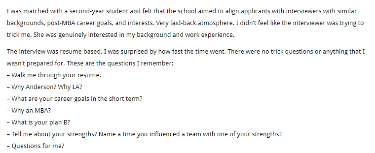 Finally, a UCLA Anderson applicant reported a solid connection with their interviewer: