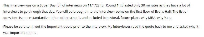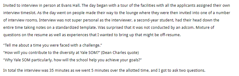 A couple of Yale MBA applicants shared their on-campus interviews: