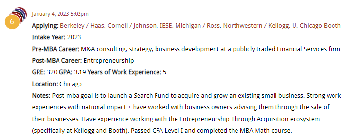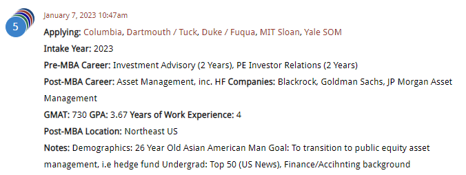 First up, Graham introduces a very solid candidate for top programs: he has a 730 GMAT, 3.67 GPA and solid banking and private equity experience. He is looking to transition from PE to Asset Management, and Alex and Graham like the switch, but hope there’s enough to differentiate his profile from some other very good, but similar, candidates. This week’s second candidate has an ambitious goal of establishing a Search Fund straight after the MBA. We discussed some of the implications of that goal, and while we believe they have great work experience to date, we worry their numbers (320/3.2) in combination may hold them back, for now – even if they have completed MBA Math. This week’s final candidate is debating admissions offers from Berkeley / Haas, Duke / Fuqua and UNC / Kenan Flagler (all with scholarships of varying amounts). They are looking to do investment banking, and are an international student. We think it boils down to the geographic preferences and IB placements, and lean towards Fuqua in this case.