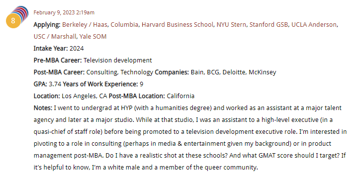 The first candidate has a really interesting background in media and entertainment. They have a strong GPA from “HYP” (Harvard, Yale or Princeton) and are seeking an MBA to transition to consulting (in the short term). They are targeting next season, and Alex and Graham think if they really do well on the GMAT and show decent quant skills overall, they should be aiming high. Alex and Graham also point out that Wharton is notably absent from their target list of programs. This week’s second candidate graduated from Penn State with a 3.21. They have a GRE of 322, so both numbers fall a little below the median for the target programs they’ve selected. They have completed the CFA, and appear to have strong work experience, so Alex and Graham are hoping for some interview invites. Because they might want to target Denver post MBA, we discussed the importance of identifying programs that have a decent network in Denver. This week’s final candidate is an M&A lawyer in India. They are targeting next season, and are looking at top European-based MBA programs. They seek to transition to VC/PE, which may be a tough pivot, especially if looking at one year programs. Alex and Graham stress the importance of acing the GMAT, showing strong quantitative scores, and applying in the first rounds. This candidate should be aiming high.