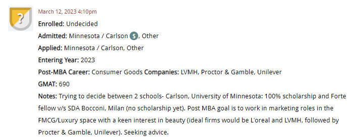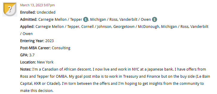 WireTaps candidate #1 is a fighter pilot who appears to have a very strong military career. The one area of their application that is concerning is a lower undergrad GPA (a 2.8 in aerospace engineering). Alex and Graham discuss options for mitigating this area of concern as well as the importance of a longer term post-MBA goal, especially for an older candidate. This week’s second candidate is weighing two quite different options, a full-ride at Minnesota Carlson, versus a place at SDA Bocconi. They are looking at FMCG or Luxury retail for their post-MBA goals, hence the diverse considerations. Alex and Graham discuss some of the key factors that should help influence their decision. This week’s final candidate is looking at options between two online MBA programs (CMU / Tepper and Michigan / Ross) and the full-time program at Vanderbilt / Owen. It looks like they prefer the online route, so they can remain at work. Alex and Graham provide some guidance in terms of how to choose between these two options.