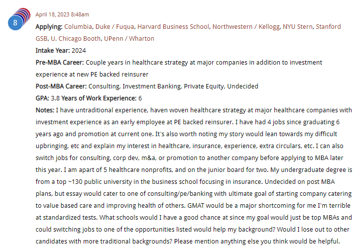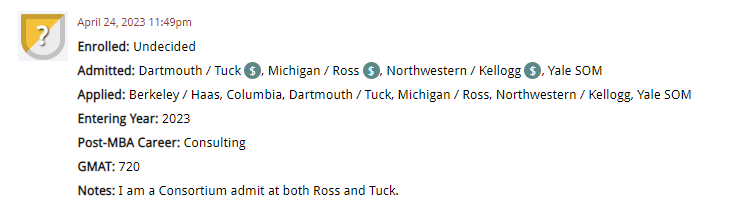 WireTaps candidate #1 is from Colombia and works in Real Estate and Construction. They have a 323 GRE score, and may plan to retake the test. They had originally targeted applying in the late rounds this season, but have now pushed their plans to the first rounds next season. Alex and Graham really like the profile, and hope that with a slightly higher GRE score, and early round applications, they will have very decent options. This week’s second candidate is from a more non-traditional background, but with a focus on health care. They have had a difficult upbringing which has helped inform some of their decisions. They have a strong undergrad GPA, but still need to take the GMAT or GRE. Their work experience does look very decent, but Alex and Graham have questions about their goals, outside interests, personal background, and more. The final candidate for this week has been admitted to Dartmouth / Tuck with a decent scholarship, Ross (slightly less money), Northwestern / Kellogg (less, still) and Yale SOM (with no support). Alex and Graham argue that it’s a toss up between Kellogg and Tuck…