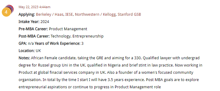 First up is candidate is from Nigeria, working in the UK. She is a lawyer who is also active outside of work, building an online community for African females. She is targeting 330 on the GRE, and with a score like that, and a strong academic record from a Russel Group university, Alex and Graham think there’s a lot to like. Graham did question some of the school selection, given her goals of returning to the UK, or Nigeria. This week’s second candidate appears to have an outstanding military career, and decent numbers. In short, he would appear to be a typical high-profile candidate from the military, with lots of options. Alex and Graham did question some of the school selection for the first round, but it’s clear that a solid plan is taking shape. This week’s final candidate is applying to Booth and Kellogg, because her partner has started a Ph.D. at U. Chicago. She has some decent work experience, but already has two degrees, which means there will be an increased focus on having a strong post-MBA goal. She also has some concerns over her verbal score on the GRE, which Alex and Graham discussed.