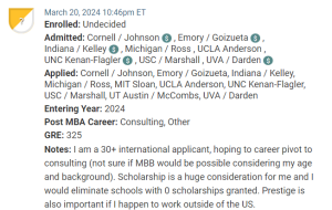 The final MBA candidate for this week is deciding between Cornell / Johnson and UVA Darden, with a goal for MBB consulting. They are an international student and wonder whether the Ivy name from Johnson should be a factor.