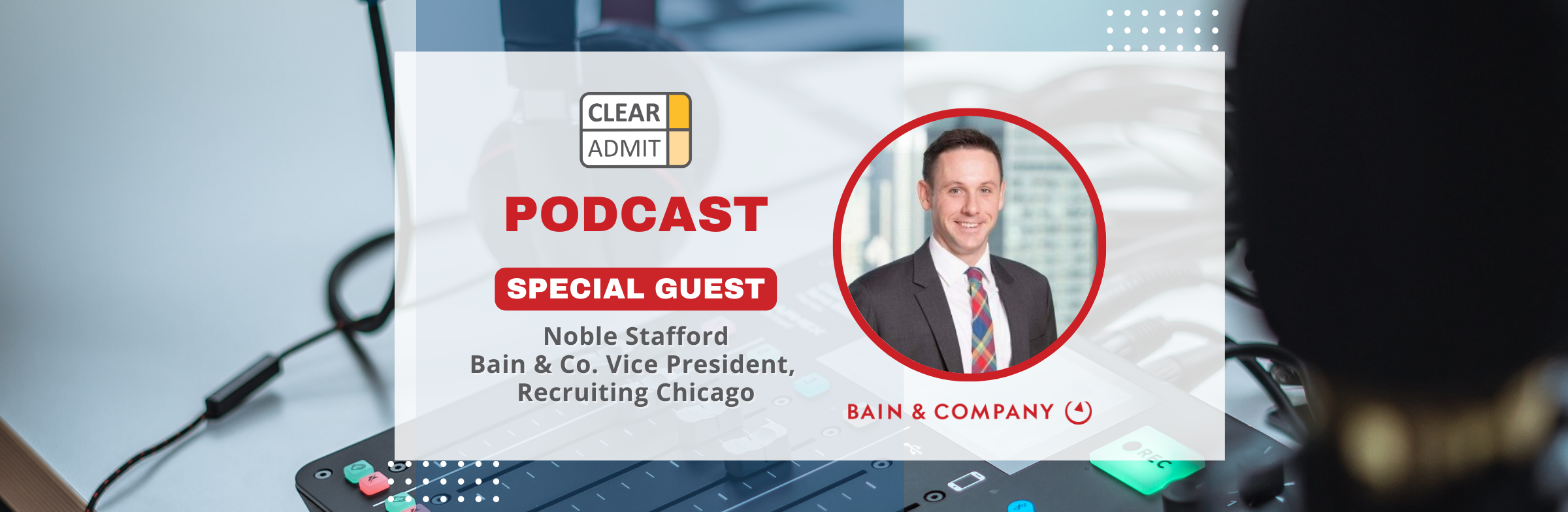In this special episode of the Clear Admit MBA Admissions Podcast, recorded live at the Clear Admit MBA Fair, we dive deep into the world of strategy consulting with Noble Stafford, Vice President of Recruiting for Bain & Company’s Chicago office. Stafford first joined Bain in 2013 as a consultant and returned in 2022 to spearhead Chicago’s recruiting initiatives. Between his tenures at Bain, Noble honed his expertise at Russell Reynolds Associates, a global executive search firm, where he excelled in both client-facing and internal team management roles. At Bain, Noble focuses on General Consultant hiring, overseeing recruitment efforts for roles from Associate Consultant to Manager. He leads a dedicated team in sourcing top talent from prestigious undergraduate, MBA, and Doctoral programs.