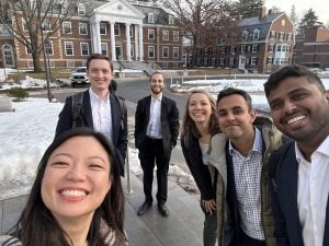 Our team members came from uniquely diverse backgrounds in startup operations, insurance, VC, consulting, human capital, life sciences and finance. Our winning team consisted of a mix of students in the Evening & Weekend MBA Program (Collin Bhojwani ’24 and Henry Richmond ’24), Full-Time MBA (Erica Klenz ’25 and Jason Epstein ’25) and MMM Program (Eunice Wangadi ’25). Although we did not know one another closely prior to competing in VCIC, we formed close bonds with one another that helped build chemistry early on and helped us complement each other’s work styles.