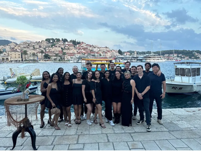 In Split, we planned a dinner where we all donned black attire and tried all of the fresh seafood delicacies that the city had to offer! We had a full-on feast with freshly caught seabass, prawns, and squid that paired perfectly with the local wine. Our 2Y leads shared with us their advice on how to bid for the right classes, manage our schedule with recruiting timelines, and choose the right clubs and organizations that suit our passions. We were thankful for all of their tips and tricks that prepared us to go into Orientation and LEAD with ease.