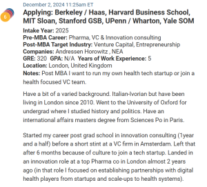 This week’s first MBA admissions candidate has a very interesting personal profile and has degrees from outstanding academic institutions in Europe. They also have a lot of entrepreneurial experience, over several years. We do worry about their quant profile, which is illustrated by their sub-par GRE score.