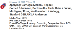 This week’s second MBA candidate applied in Round 2, is from India and works in the tech space. Despite being potentially over-represented, they have received several invitations to interview, including from Stanford.