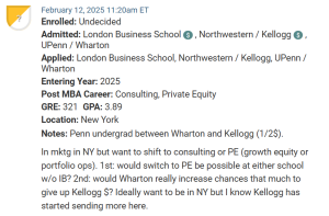 The final MBA candidate is deciding between Northwestern / Kellogg, with a scholarship, and UPenn / Wharton.
